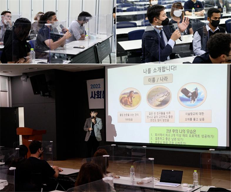 또한, “인사말도 모른 상태로 한국에 와 소통의 어려움이 가장 컸지만, 위기를 기회로 삼아 대학 생활을 하면서 한국인 친구를 만나고, 적극적으로 언어가 문법적으로 맞든 틀리든 대화를 많이 했다”라며 자신의 경험을 공유하면서 각자만의 목표를 가지고 한국에 온 만큼, 부딪히며 배워가야 한다고 강조했습니다.