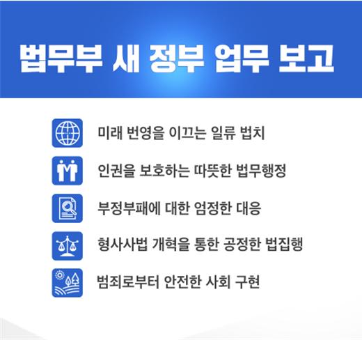 최근 법무부는 ‘정의와 상식의 법치’를 목표로 한 새 정부 법무정책을 발표했습니다.
