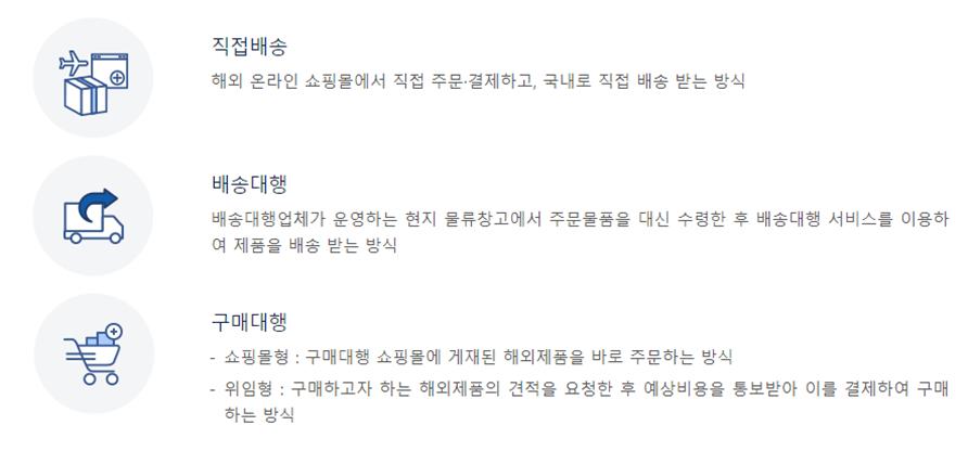 이러한 직구의 유형별 절차는 다음과 같습니다.