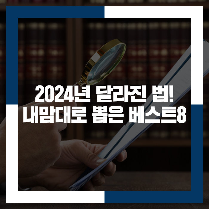 오늘은 2024년에 새롭게 적용되고 있는 법과 제도 중 우리 생활에 크게 와 닿을 8가지를 선정하여 여러분께 알려드리고자 합니다.