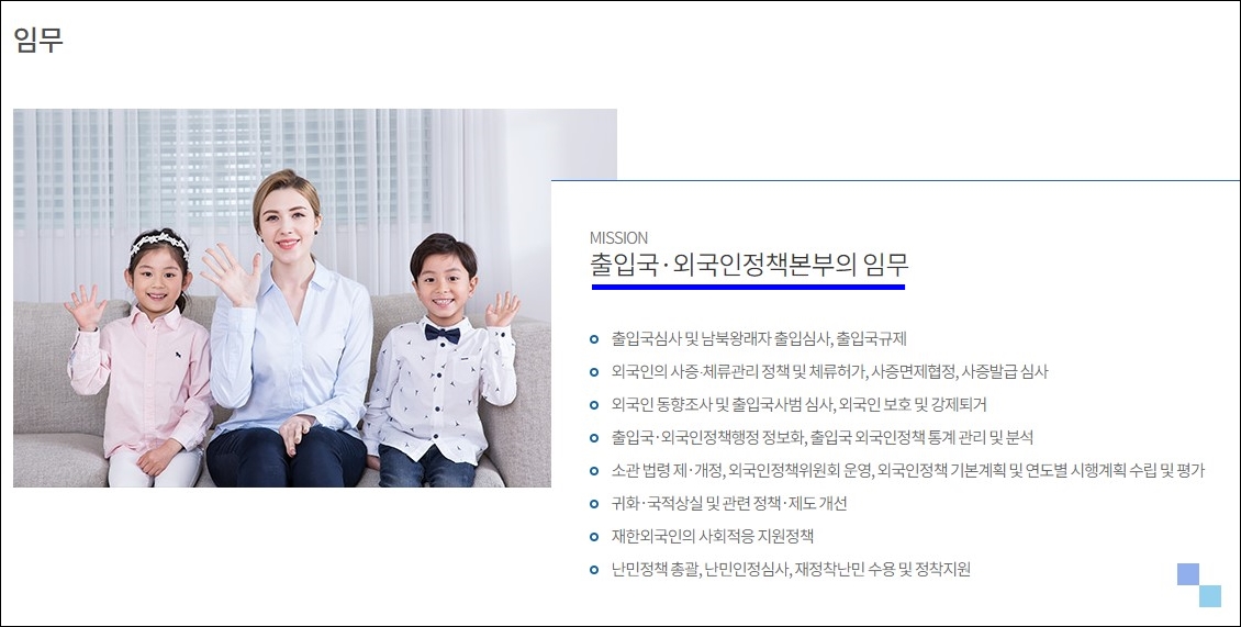 • 출입국·외국인정책본부 소개 https://www.moj.go.kr/immigration/index.do