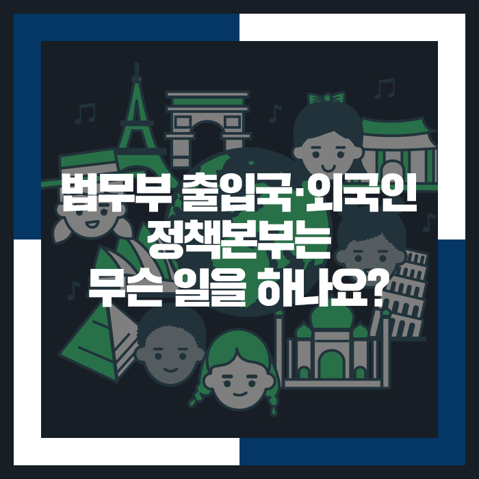 이렇게 한국에 체류하는 외국인이 많아지면서 출입국 등 외국인 정책이 중요해지고 있습니다. 불법으로 체류하는 외국인이나 밀입국이 증가할 우려가 있는데요, 우리나라 정부 부처에서 이런 업무를 하는 곳이 어디일까요? 언뜻 생각하면 외교부라 생각할지 모르겠는데요, 법무부 산하 출입국·외국인정책본부입니다.