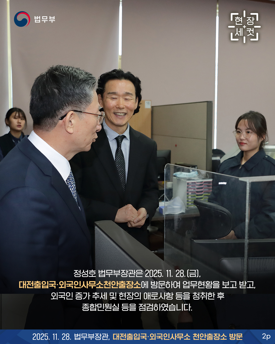 #법무부 #Ministry_of_Justice #현장세컷 #대전출입국외국인사무소 #천안출장소 #정성호 #장관 #현장방문